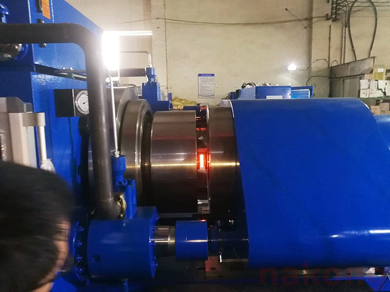 具体过程为:设备主轴一端为旋转端,另一端为固定端。旋转端在驱动下与飞轮及夹持工件一起旋转,当飞轮或主轴转动达到预设值时,切断主轴外部动力,设备固定端移动加压使两个待焊工件接触j9游会真人游戏第一品牌,摩擦扭矩快速增加,工件接触界面处的净摩擦促使旋转速度和贮存能迅速降低,同时轴向发生缩短,出现飞边,达到最大缩短量,焊接停止,顶锻力持续至工件冷却,至此整个焊接过程结束。焊接过程中,焊接压力、转动惯量和主轴转速在设备参数范围内可任意设定。
